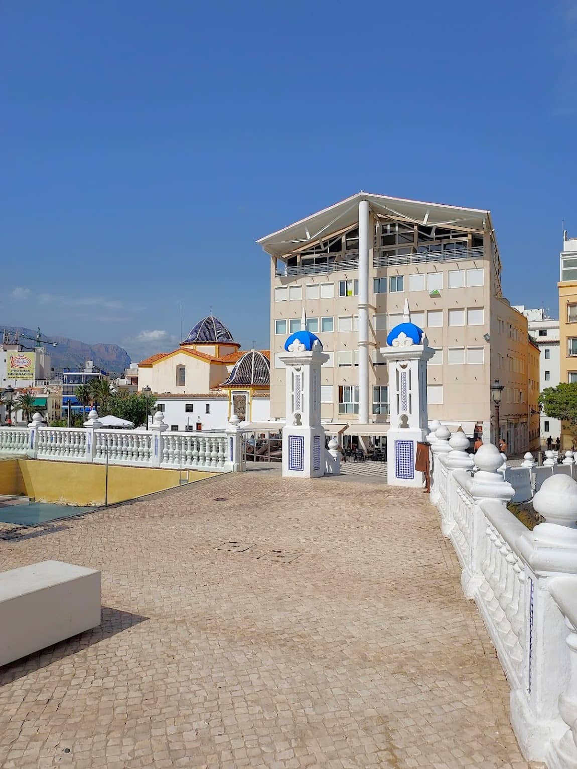 Fascino storico. La chiesa di San Jaime, con la sua cupola blu, si trova al centro di tutto, e adoro guardare il tramonto dal belvedere Balcón del Mediterráneo proprio dietro di essa. La parte migliore? È completamente gratuito e offre una vista incredibile su entrambe le spiagge.