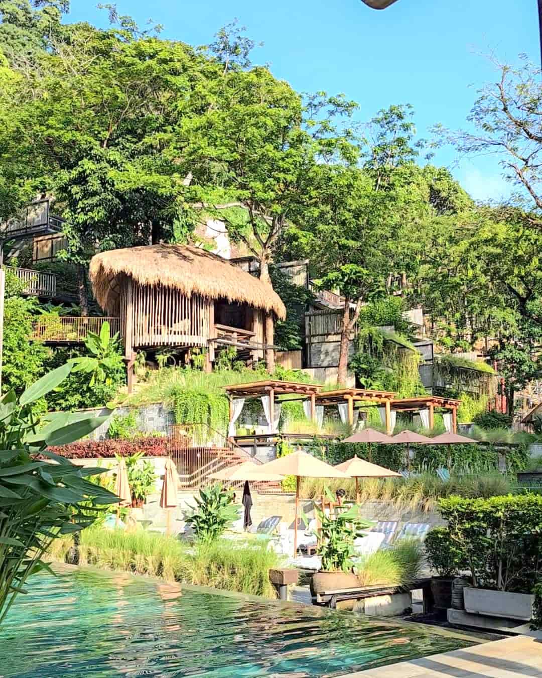 Atmosfera da rifugio nella giungla. In cima alle colline, sarete circondati da piante tropicali e dal canto degli uccelli invece che dal rumore delle moto. Si trova a soli 10 minuti dal caos della spiaggia con un taxi-moto per 100 THB, ma sembra di essere immersi nella giungla thailandese: un luogo estremamente tranquillo e rinfrescante. L’aria è più fresca quassù, soprattutto la sera quando si alza la brezza.