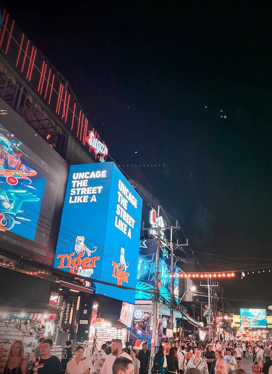 L’energia di Bangla Road. Non appena metti piede su Bangla Road, le luci al neon ti illuminano il viso e la musica con bassi potenti pulsa da ogni direzione. Ho percorso questa strada innumerevoli volte e l’energia non passa mai di moda: è la pura follia della vita notturna di Patong, dove i festaioli escono dai club fino all’alba.