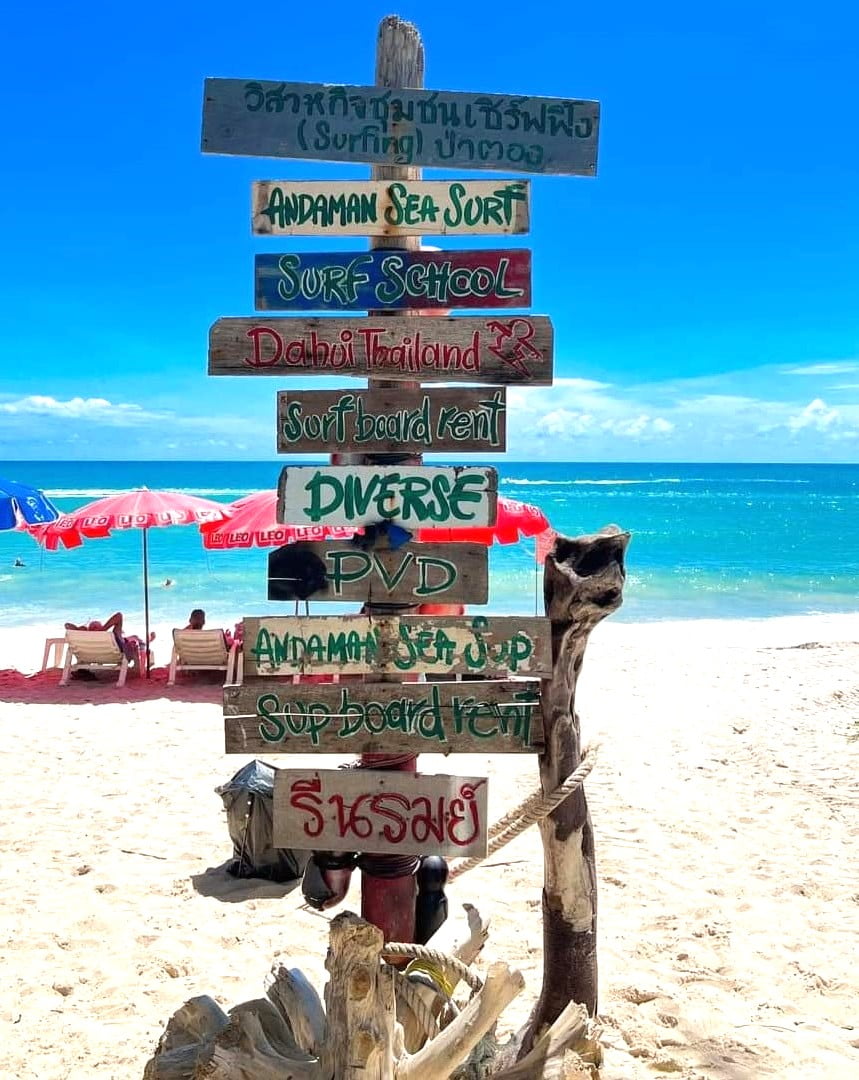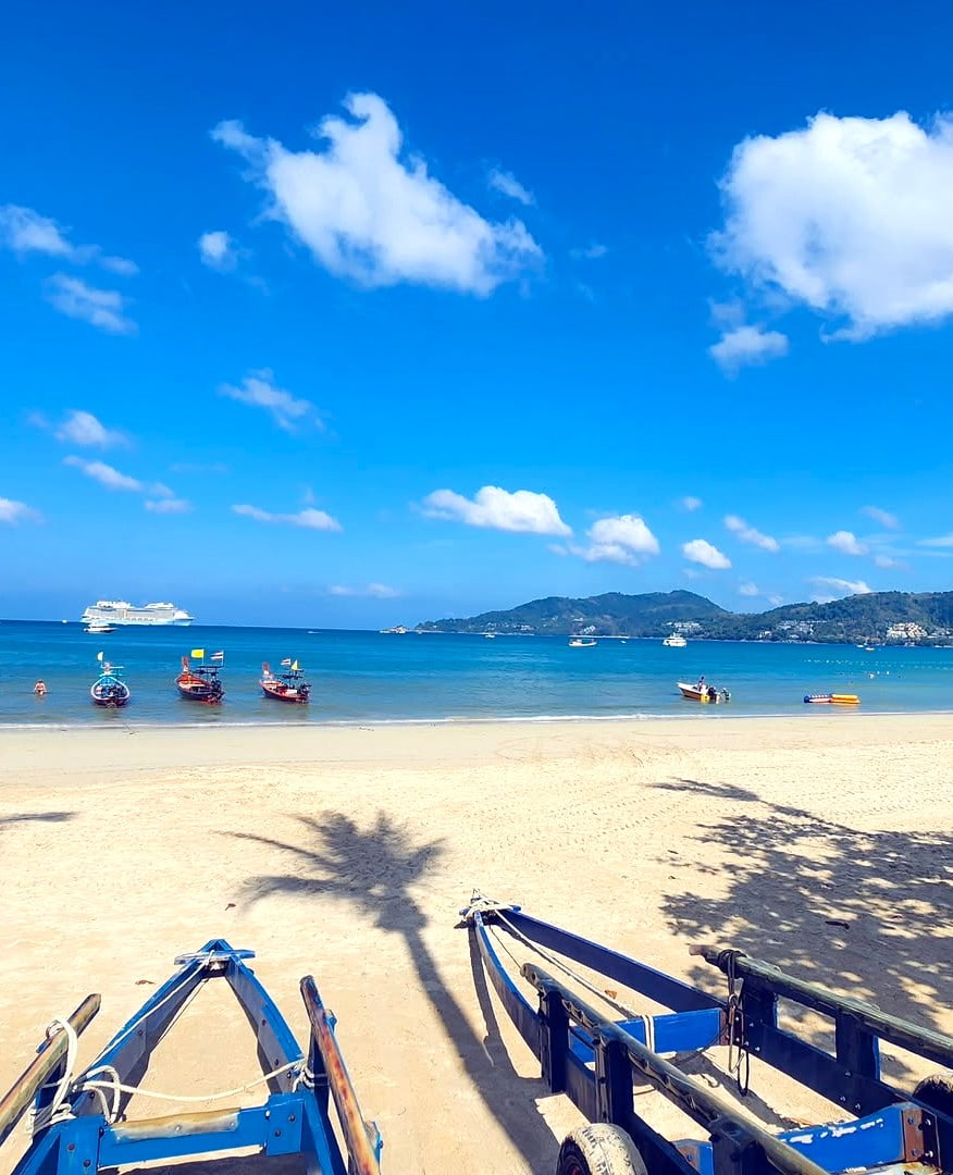 Luoghi sicuri per nuotare. Qui i bagnini prestano davvero attenzione e le onde sono più dolci rispetto al nord. Ho visto bambini piccoli sguazzare in tutta sicurezza mentre i loro genitori si rilassavano sulle sedie a sdraio che costano solo 80 THB per l’intera giornata. Karon Beach, a soli 10 minuti a sud, ha acque ancora più calme, perfette per i più piccoli.
